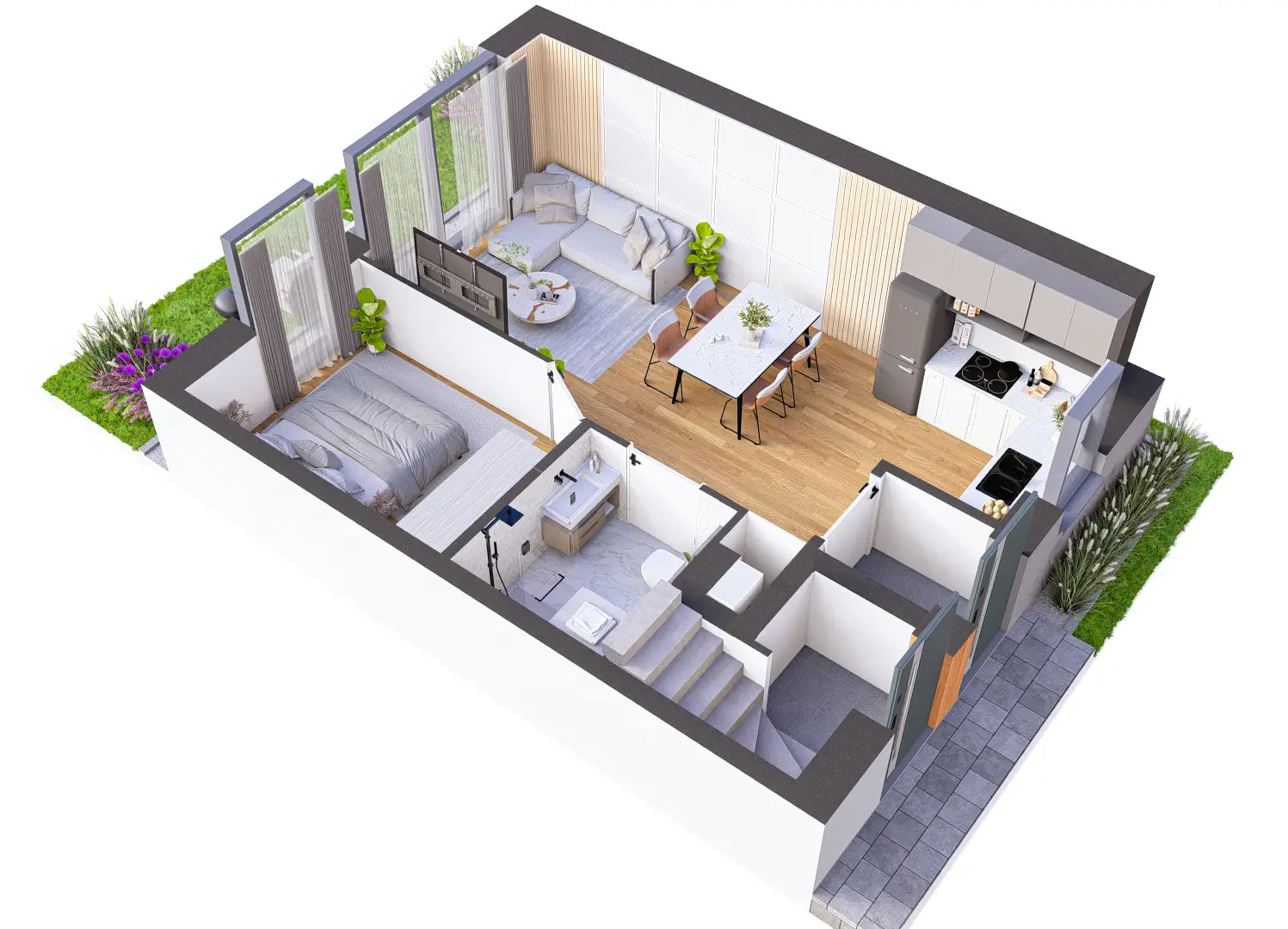 W ofercie są cztery rodzaje mieszkań dwu-, trzy- i czteropokojowe dopasowane do różnych potrzeb. Funkcjonalny układ pomieszczeń a także przestronny salon z wyjściem na ogród lub balkon zapewnią Tobie wysoki komfort życia.