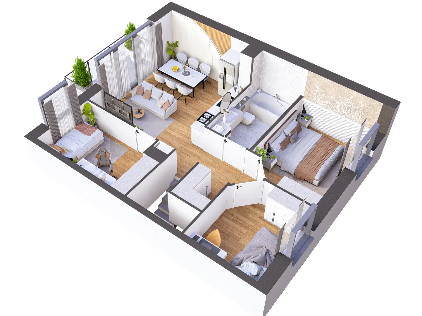 W ofercie są cztery rodzaje mieszkań dwu-, trzy- i czteropokojowe dopasowane do różnych potrzeb. Funkcjonalny układ pomieszczeń a także przestronny salon z wyjściem na ogród lub balkon zapewnią Tobie wysoki komfort życia.